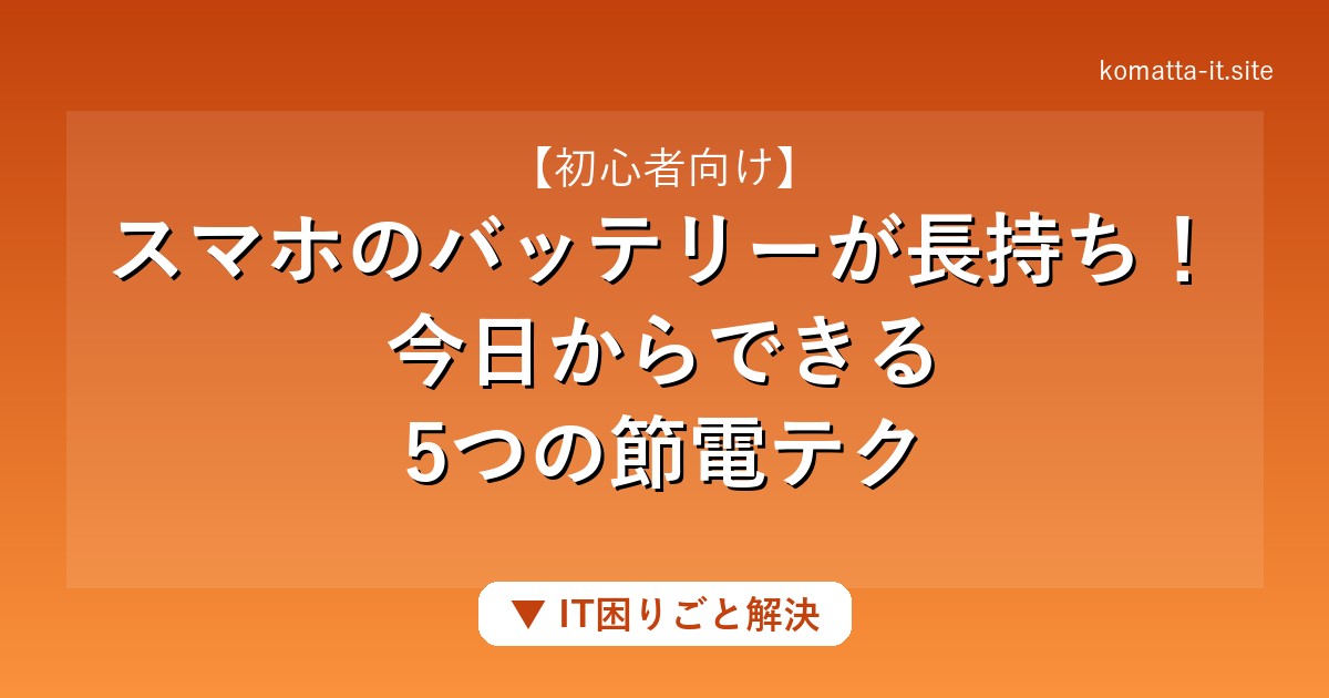 こんにちは、「小さな困ったIT解決サポート」です。スマホのバッテリー減り、本当にストレスですよね。