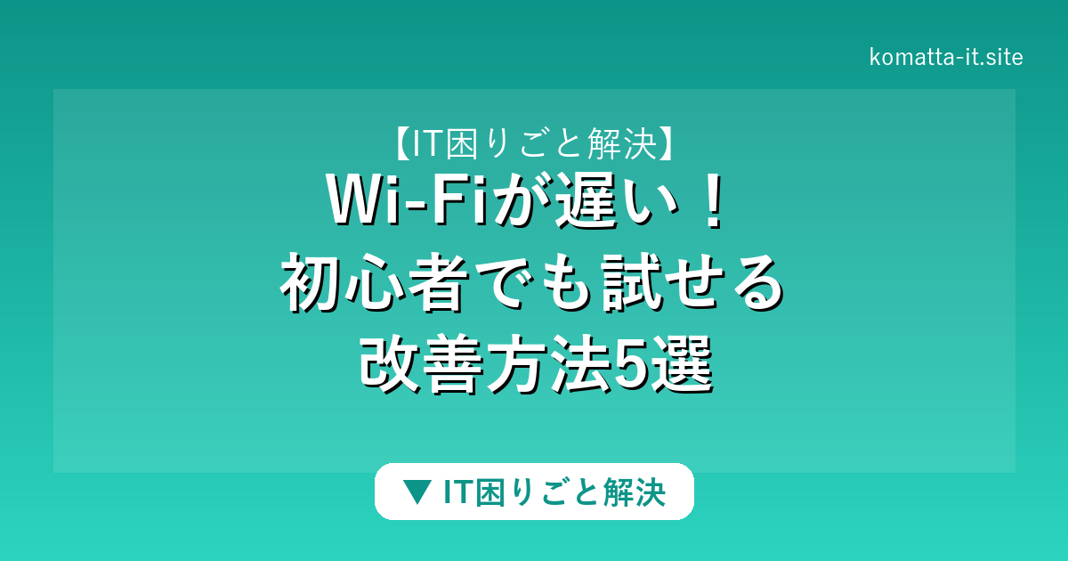 こんにちは、「小さな困ったIT解決サポート」です。Wi-Fiが遅いと、在宅ワークも副業も全然はかどりませんよね。
